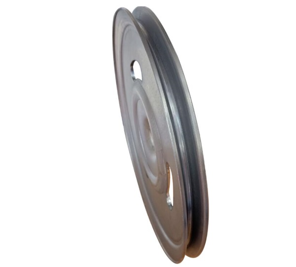 旋压皮带轮通常称为钣制旋压带轮。它是采用钢钣经拉伸成预制毛坯,在皮带轮旋压机床上,由旋轮对回转的预制坯径向加压,使毛坯产生由点到线、由线到面的塑性变形而制成的皮带轮。旋压皮带轮一般有三种基本形式,1折叠式v型带轮;2劈开式v型带轮;3滚压式多v型带轮(也称多楔带轮)。