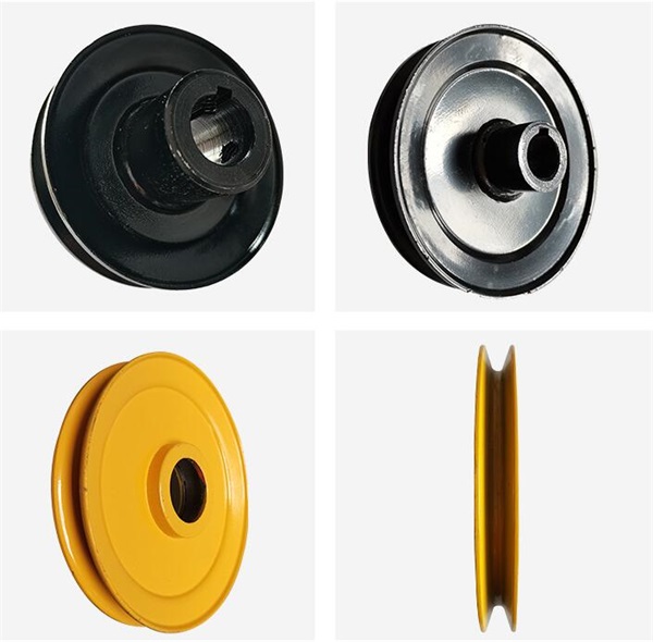 皮带轮是一种用于增加附着力的措施槽形皮带轮,轮周设有波曲环的槽,皮带装入波曲环槽内也被弯曲呈波曲状态,则在波曲槽内要形成一个侧向的附加包角及相互的周向作用力,增加了传递能力,防止打滑。特别适用于露天作业及恶劣环境作业的设备传递动力。 产品展示